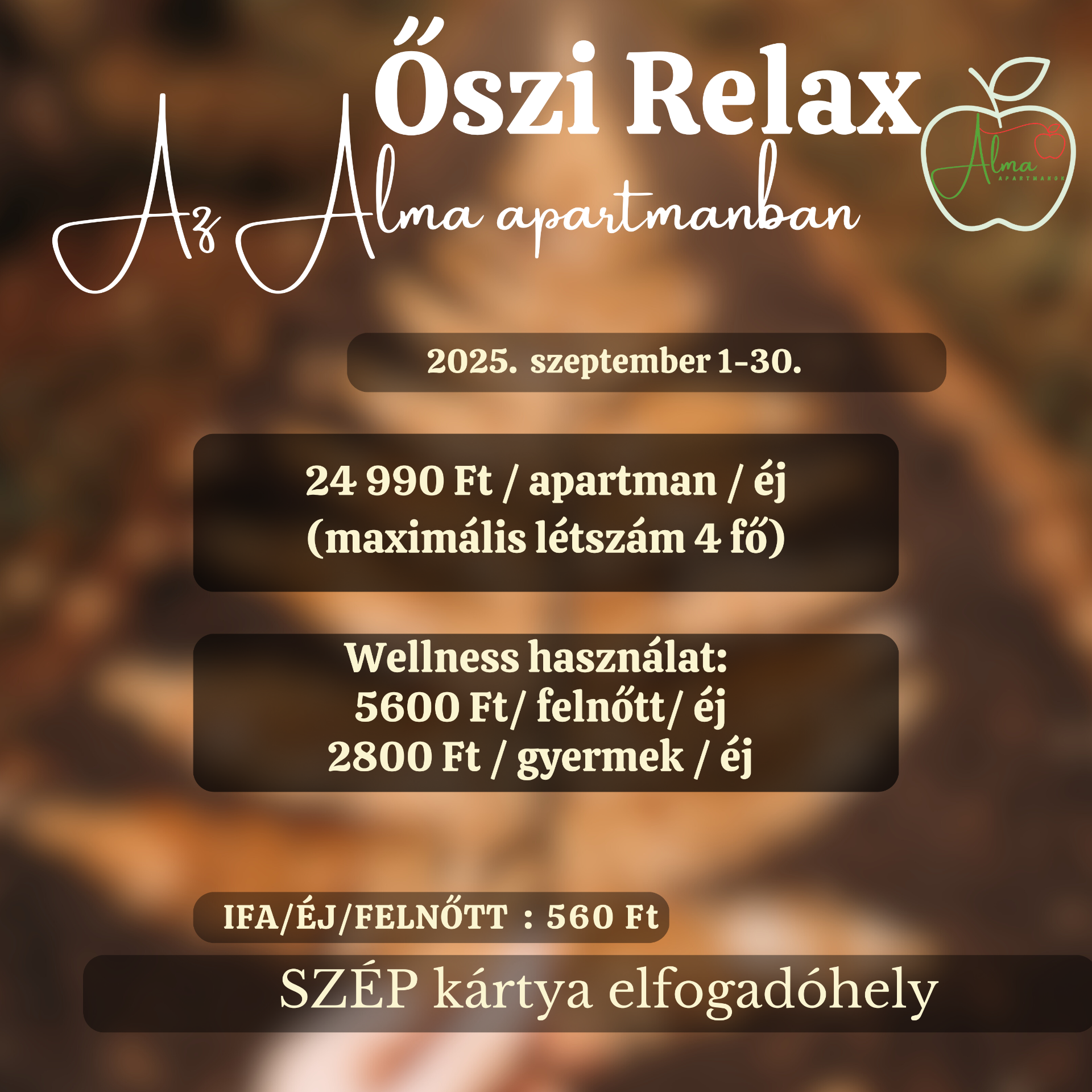 Tölts el néhány napot az Alma Wellness Apartmanban, és élvezd az ősz varázsát Zalakaroson – ahol minden adott a pihenéshez és feltöltődéshez.