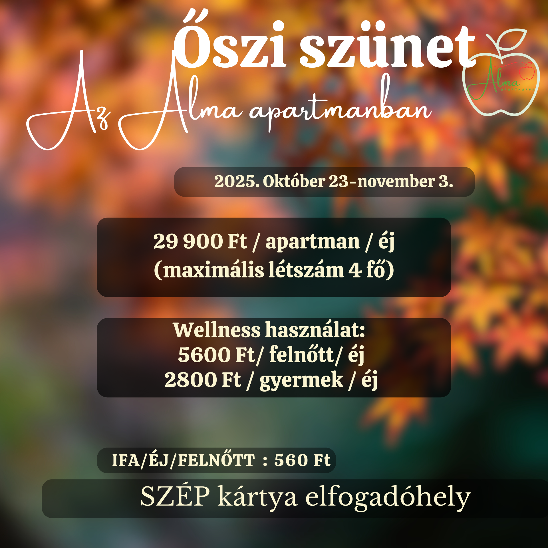 Töltsétek az őszi szünetet Zalakaroson, az Alma Wellness Apartmanban – ahol a gyerekeknek kaland, a szülőknek igazi kikapcsolódás vár!